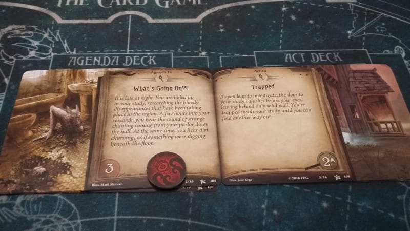 There is, however, an Agenda deck that represents the impending doom upon Arkham and the investigators. This also contains a story element with objectives the players will not want to trigger!