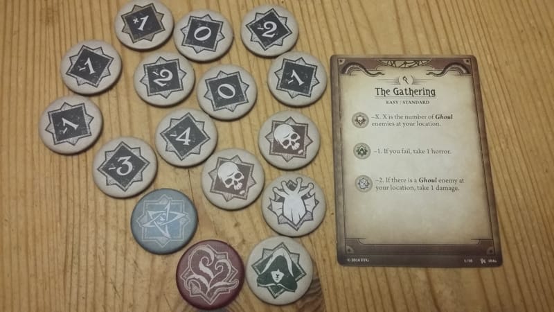 Each investigator has four skills: willpower, intellect, combat and agility. During the game various situations will require players to make a skill check. This is done by drawing a random token from the chaos bag.