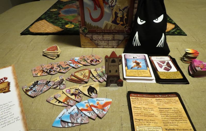 If you know how to play Castle Panic, you’ll have no problem mixing the new stuff from The Wizard’s Tower in and playing right away. The reference cards are fantastic and none of the new cards or monsters are confusing at all.
