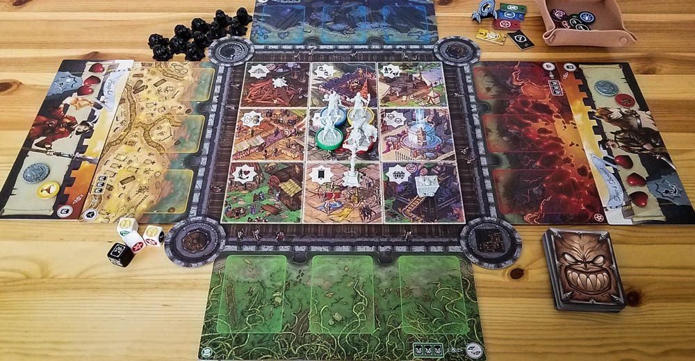 Last Bastion is a cooperative tower defense game in which you’re trying to defend your fort against a horde of monsters and stay alive long enough to defeat the Warlord. This is kind of a fantasy remake of Ghost Stories, one of the toughest co-op board games ever made (and one of the best cooperative games out there).