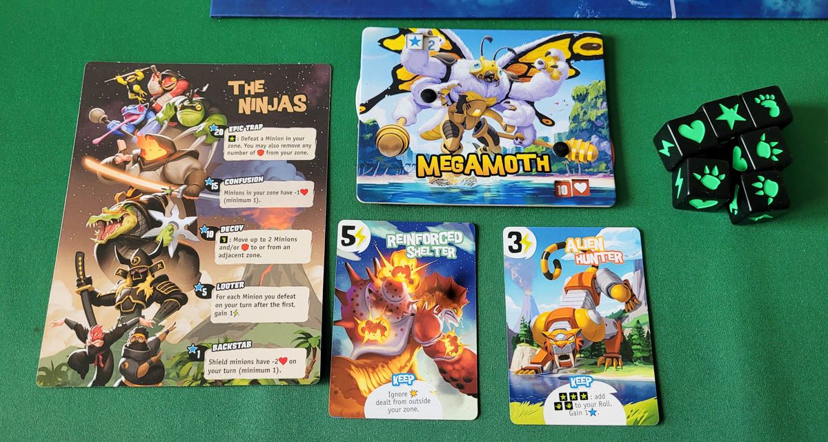 King of Monster Island is a cooperative dice-rolling fighting game in which you play as monsters who are attempting to defeat a big boss before it destroys the planet. It’s based on the competitive game King of Tokyo, but removes monster elimination and adds in some cooperative elements.