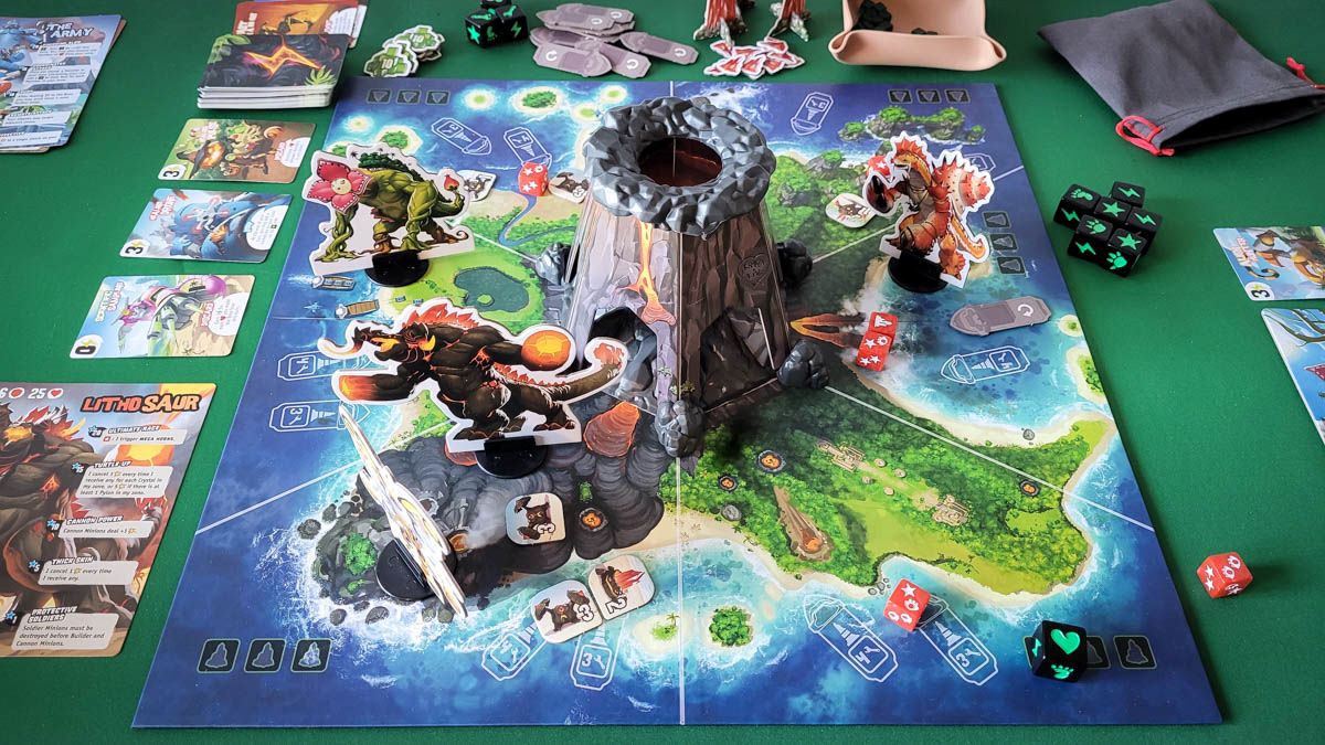 - The volcano dice tower is very cool. It’s easy to set up and the dice do go in random zones on the board. Other than the dice tower in The Stygian Society, this is my favorite dice tower in a cooperative game.