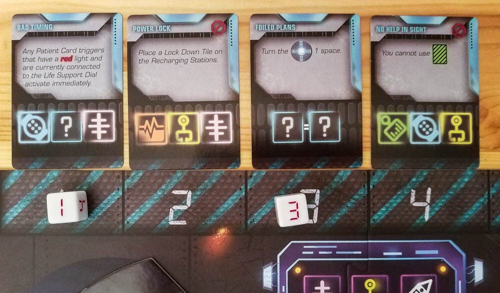 To win the game, you need to save all of the patients. You’ll lose if the ship runs out of power or if too many orange emergencies make it to that red section of the board.