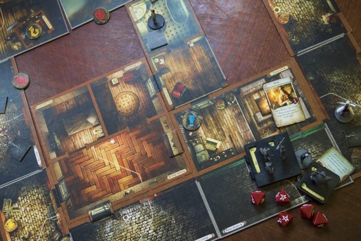 The role of the keeper is now managed by an easy-to-use app that can be run on iOS, Android, PC and Mac. It manages the scenarios, and handles the monsters so that all players can now work together. It also drastically reduces setup time. In the first edition, the entire house was laid out in advance, and cards placed face down in them to indicate challenges and items to be found. In this new edition, you need only lay out a couple of tiles, and tokens to indicate items of interest. As new rooms are discovered, you lay out additional tiles and tokens as instructed.