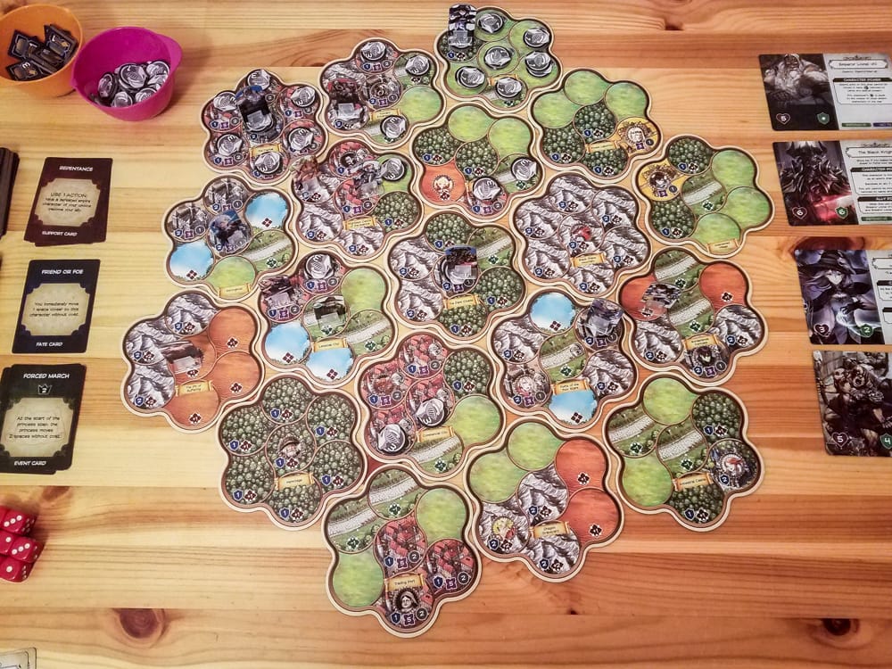 - There is a ton of replay value here. The map is semi or fully randomized, you’ll have different characters in play, there are four different princesses you can play with, and the event and fate cards add in even more randomness.