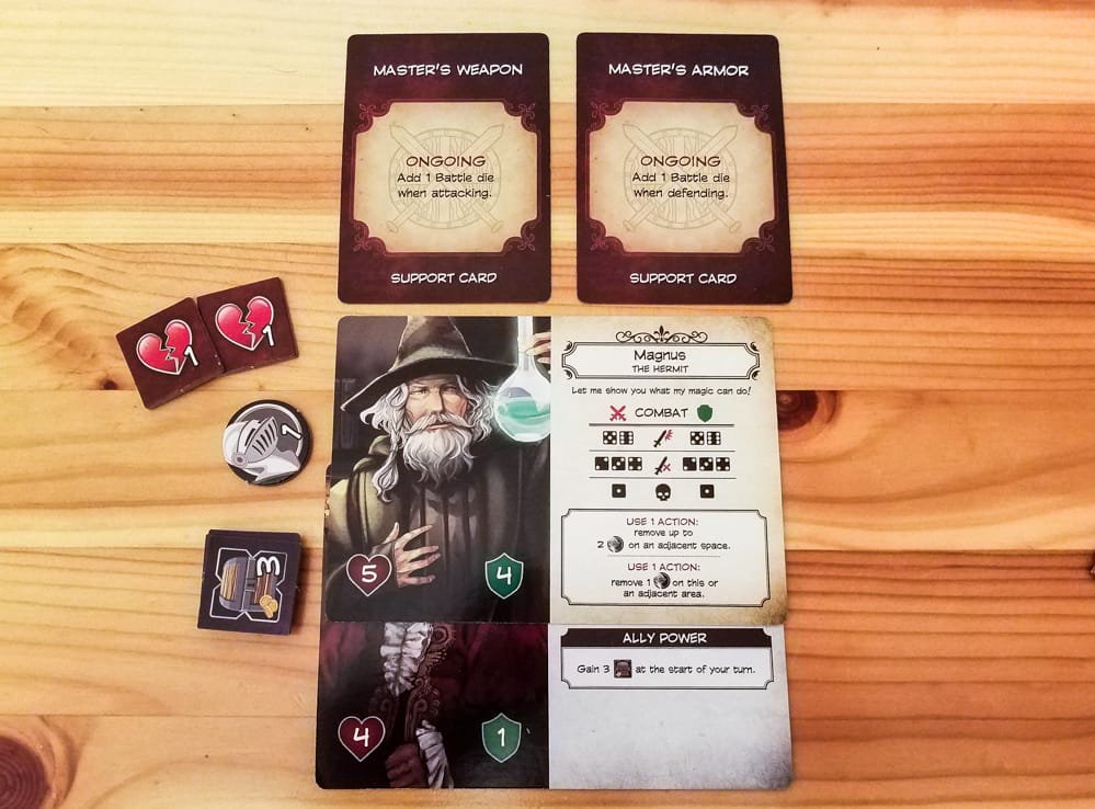 After the event card has been resolved, all of the player-controlled Kingdom characters take their turns. You’ll have a set amount of actions you can take on your turn depending on the number of players. You can move around the map, recruit soldiers, collect resources to feed and arm your soldiers, send soldiers or resources to other characters (including the princess), and draw support cards. You can also use support cards and your character’s special powers on your turn.