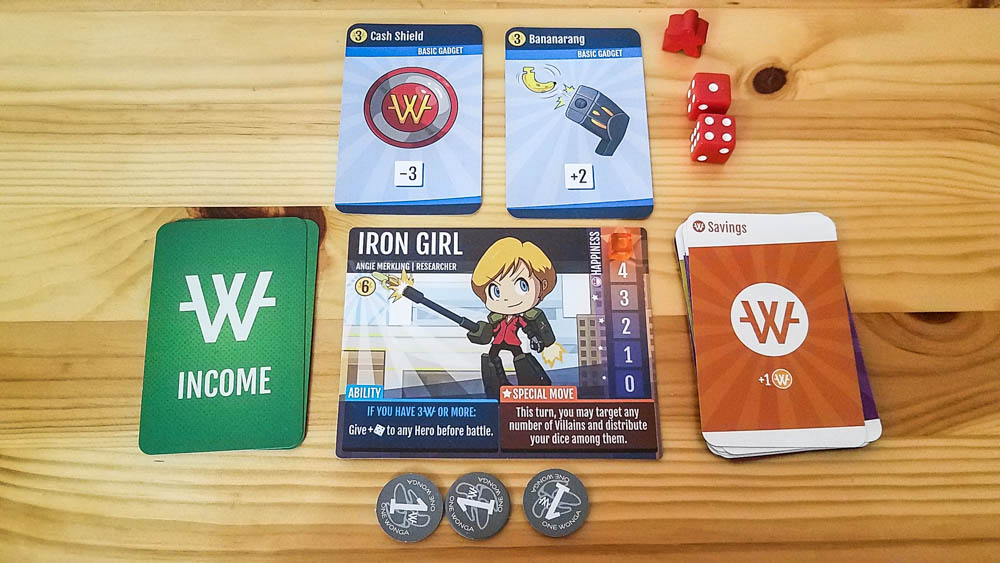 - The gadgets are all pretty similar, either giving you extra dice or modifying the dice you rolled. It would have been cool if some of them had unique abilities, such as targeting specific types of villains.