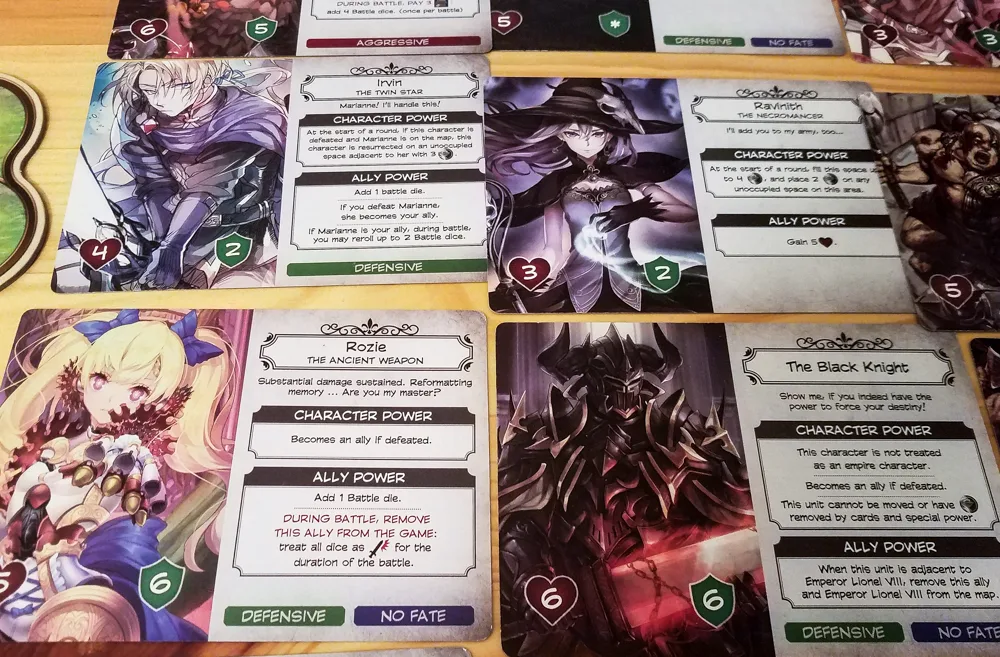I’m not a huge fan of the anime art style, but I love the look of Unicornus Knights. The tiles and the character cards are nice and bright, and each character has a very distinctive look. The artists had to do a good job of making each character stand out since so many of them are spread out around the board during the game.