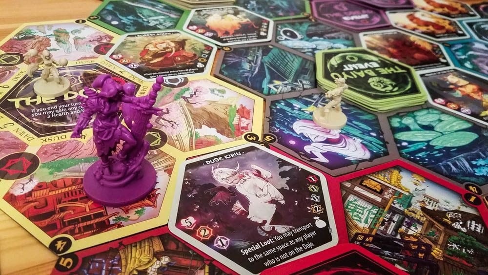 In the Versus Arena mode, you’re racing to be the first to max out all three of your energy tracks and make it back to the home base (the Dojo). In the scenarios, you’re usually trying to work together to defeat one of the three Corrupted, who are powerful villains with their own special abilities. There are 18 scenarios (three for each champion), each with its own unique set of rules that change up how the game is played. You can also play through a Story Arc, which is one Versus Arena game and two of the winning champion’s scenarios.