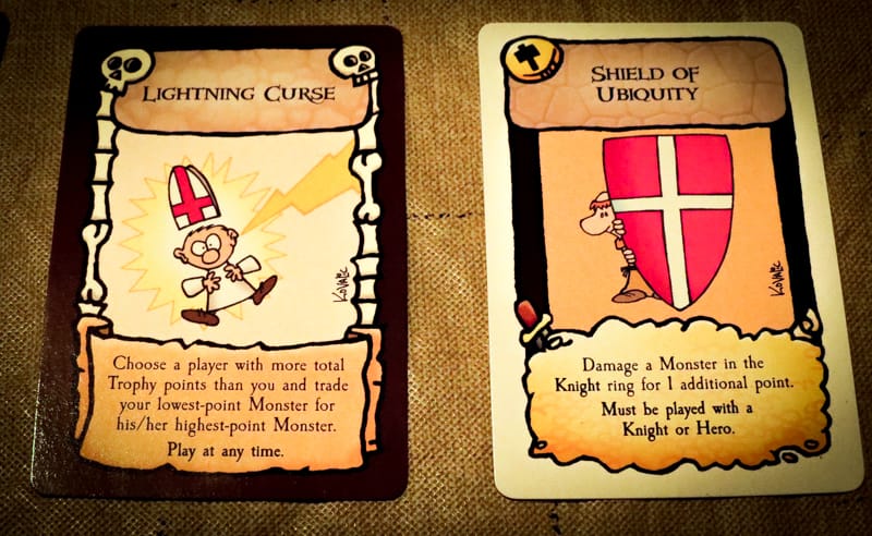 - The negotiation mechanism works really well when playing with three or more players. It adds in an extra bit of strategy and it’s fun trying to get people to give you monster trophies and/or treasures just so they can use your cards.