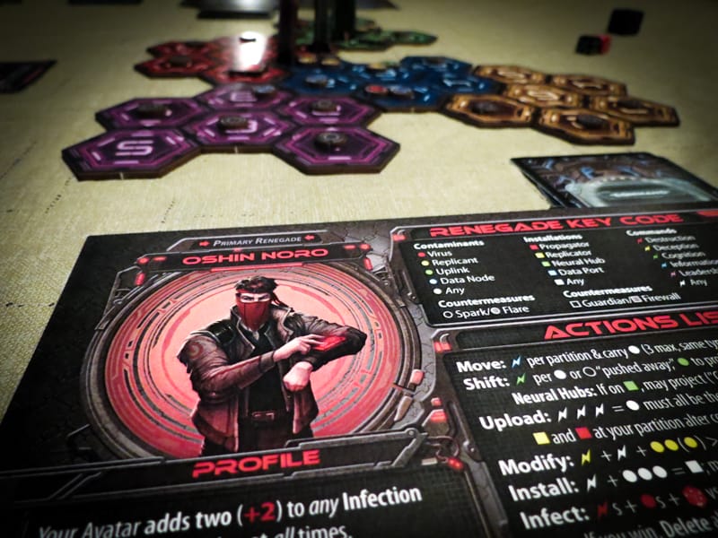Renegade is played in “cycles.” These cycles are are made up of player turns (three per player per cycle) and Countermeasures (the SMC hitting back at you). During each player’s turn, they’ll be using their five command cards to try to manipulate the network in such a way that both keeps them on the network and helps them complete their objectives.