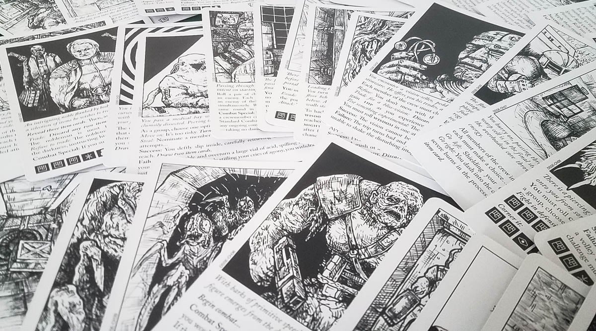 During a game of Escape the Dark Sector, you’ll be attempting to make it through three acts (four chapter cards per act) and then defeat a final boss. You’ll do this by using your crewmembers’ skills, weapons, and any other items you find along the way.