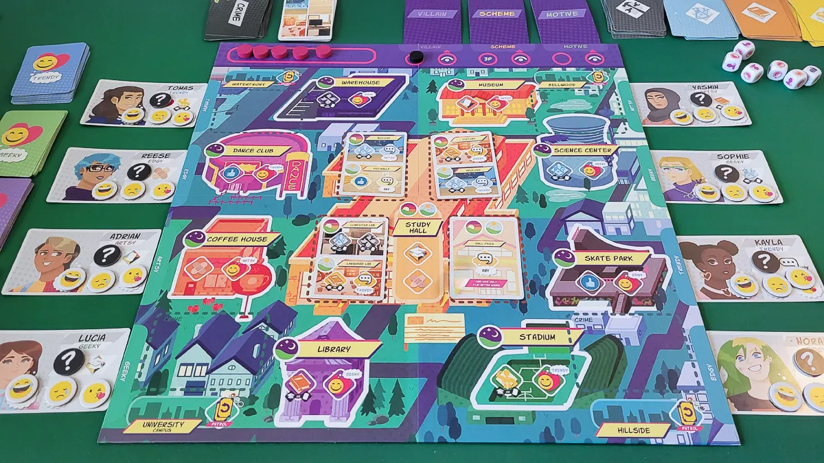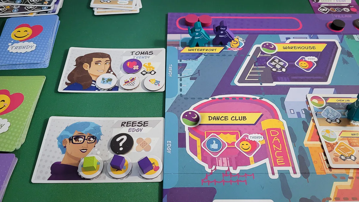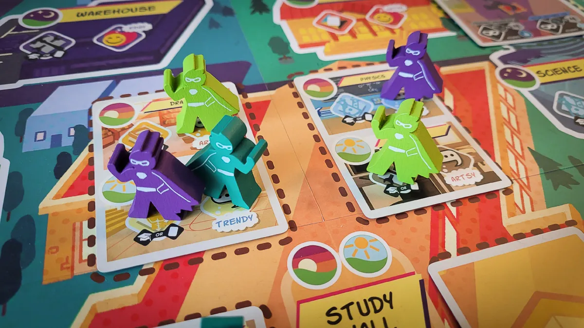 Super Squad High is a cooperative, crime-fighting, worker placement game in which you play as teen superheroes who need to unmask and fight a villain, who happens to be one of your classmates.