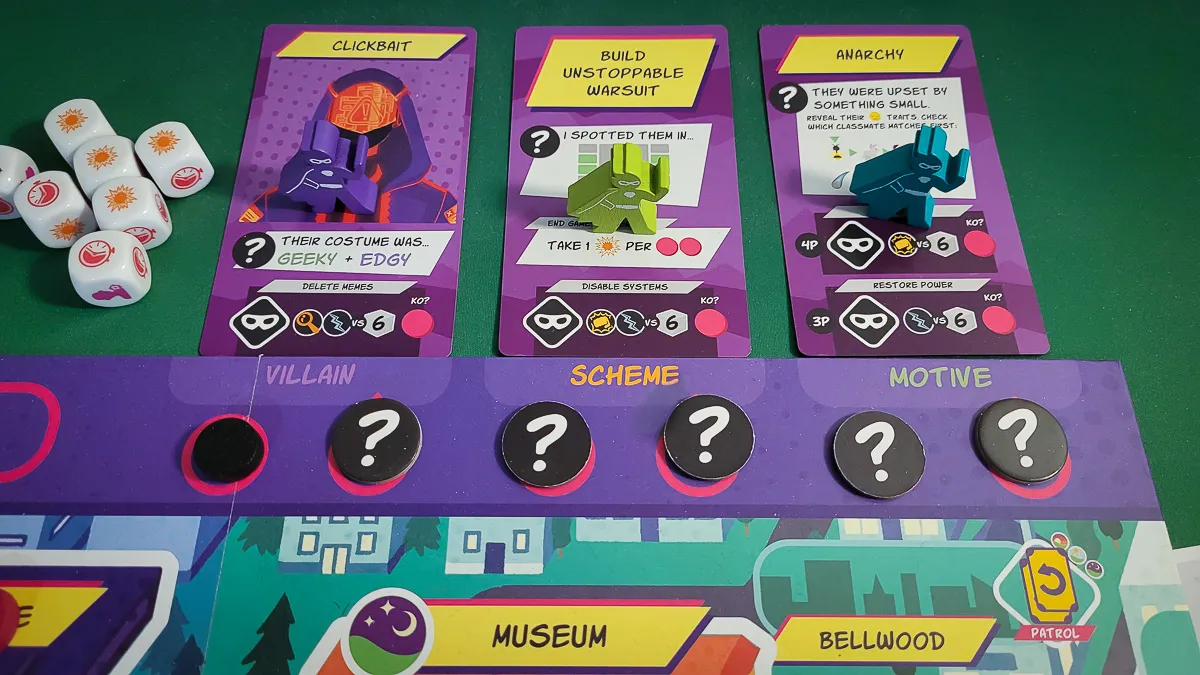 - There’s plenty of cooperation in this game. You can play cards to help other players fight crimes when you’re in their location, and you can use your character’s ability on anyone’s turn. You also need to communicate throughout to make sure you’re moving closer to revealing the villain while also taking care of your homework and getting new costume cards in your hands.