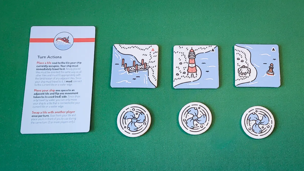- Move Your Ship: Use movement tokens to move to an adjacent water-connected tile. Each move costs one token. You can also discard tiles, moving one space per discarded tile.