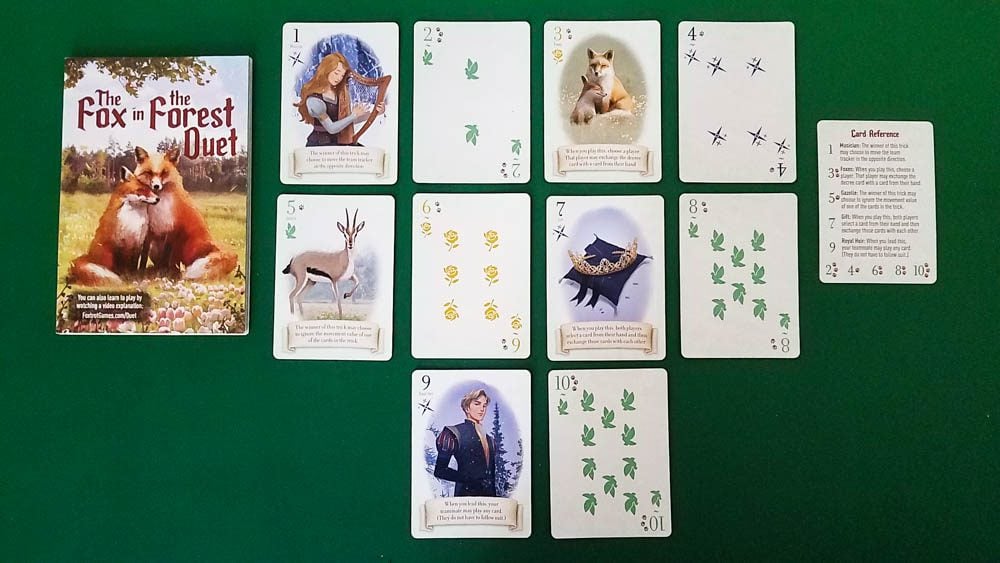 - Just like in the original The Fox in the Forest, Duet’s cards have a nice and clean look to them. I also like that each suit has different art for their special ability cards.