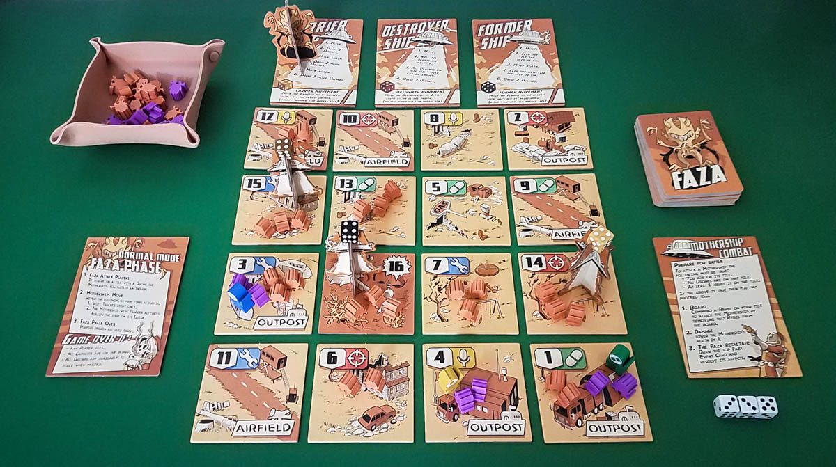 - This is a very cool theme. I like that the invaders have three motherships that all act differently, I like that the rebel aliens are on your side and are the true heroes of the game, and it’s great that your characters can use their knowledge of the planet to their advantage (via tile bonuses). There are plenty of other alien invasion board games, but Faza is definitely a unique one.