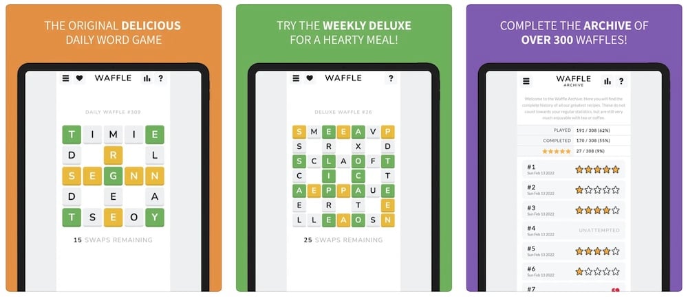 Waffle looks like a typical word puzzle game, but it comes with a twist. In this game, you rearrange scrambled letters on a waffle instead of filling in blanks. You’ll need to line up six words correctly to complete levels in Waffle.