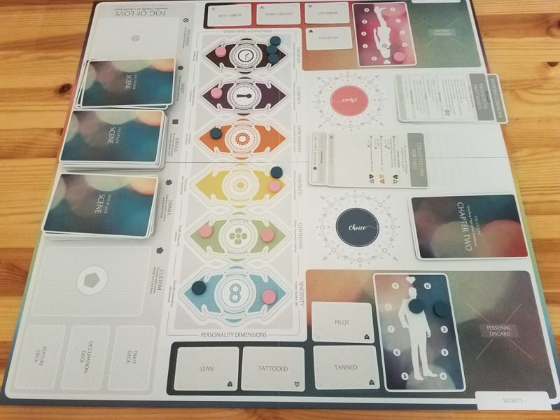 Fog of Love is a two-player cooperative card game in which you are attempting to make a relationship work. You’ll create unique characters and play through a scenario to see if the characters are meant to be together.