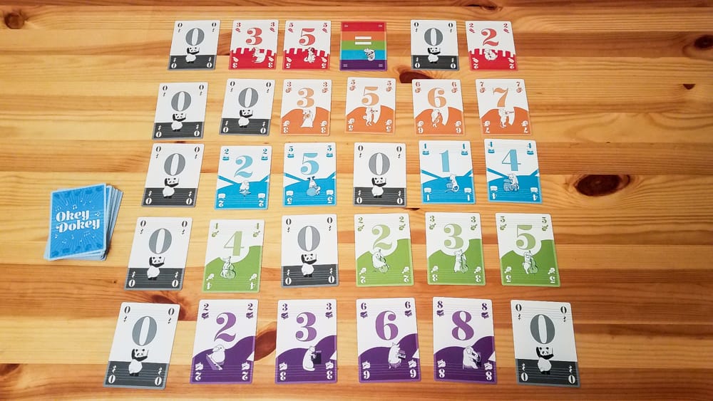 - For a small-box card game, Okey Dokey sure does take up quite a bit of table space. The picture I posted above only shows half the size of the final grid, so you can imagine how much space it ends up covering.