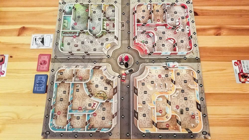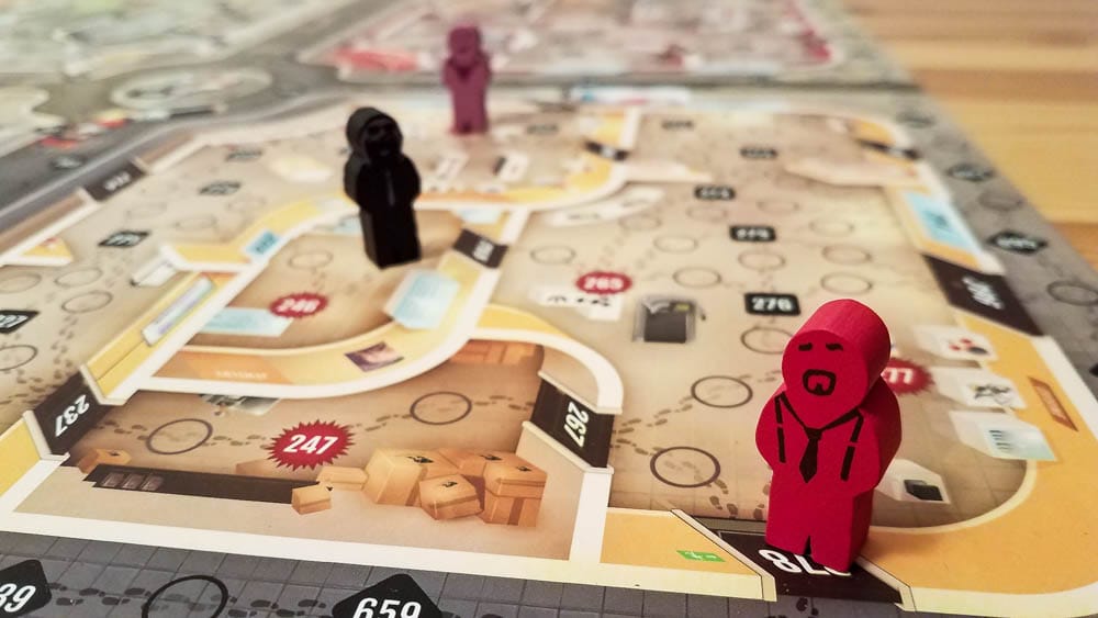 - It only takes a minute or two to set this game up. Seriously, you open the app, you get the money and thief cards you need, you get your investigators’ cards, and then you put the investigator meeples in the middle of the board. Boom, done.