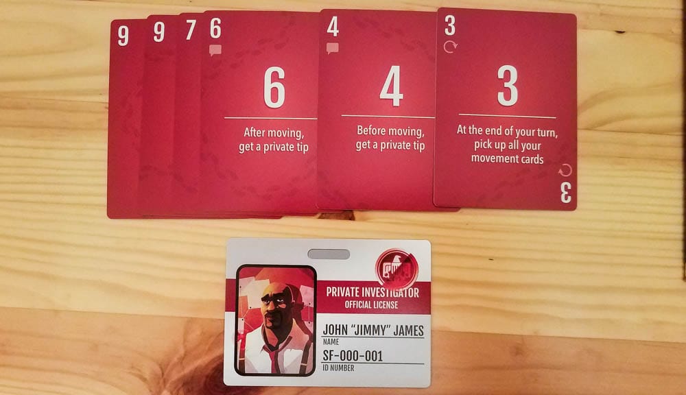 After you get a clue, you’ll play a card from your hand. Each investigator has a unique deck of six movement cards. These cards have numbers representing how far the investigator can move and some also have special abilities that can be used. You can’t pick up played cards until you play a card that says you can.