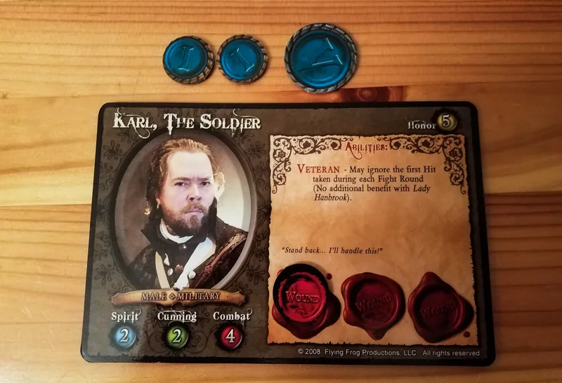 If you ever move to a location that has a minion on it, you have to immediately fight that enemy. Fighting is very simple: you roll a certain amount of dice depending on your combat skill and then roll the minion’s dice. Fighting happens simultaneously, so both you and the minion could take wounds during the same fight round. The fight continues until the minion is killed, your hero is knocked out, or you decide to escape. If the hero is knocked out, they will usually heal up before their next turn, though they will lose some items.