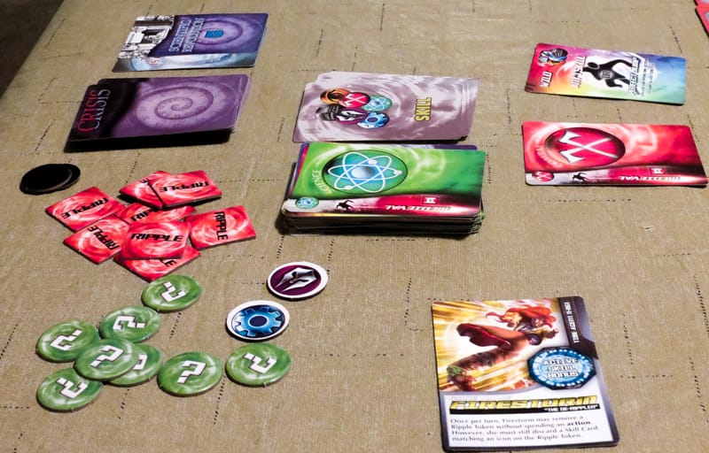 You’ll be taking three actions on each of your turns. These actions include moving, time jumping, drawing Skill cards, sharing cards, removing Ripple tokens, and repairing a tile in crisis.