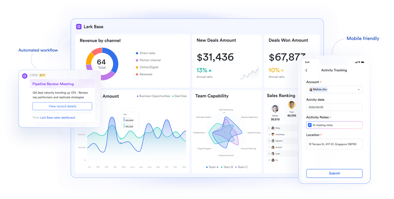 Growth often exposes the shortcomings of inefficient systems. Work gets duplicated or scattered across multiple teams, and disconnected processes leave data incomplete. Lark Base builds a collective system of representation that adapts fluidly as projects, tasks, and workflows flow into one unified platform. It provides structure without rigidity, supporting client project management, operations pipelines, and marketing campaigns in a way that scales smoothly.