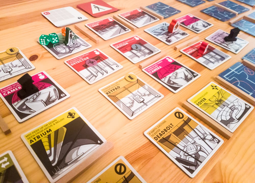- Even though there aren’t a ton of cooperative actions, there is plenty of cooperation in this game. You have to work together to make sure everyone avoids the guards, which means you might need to switch floors to keep a guard from moving or you might even purposely trigger an alarm to help out a teammate.