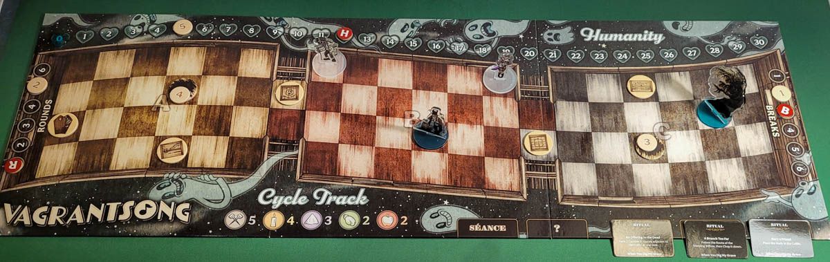 Each scenario has multiple Rituals that the Vagrants can perform by completing the objectives shown on the cards. You don’t have to complete those objectives, but the rewards usually make the scenarios much easier to beat.