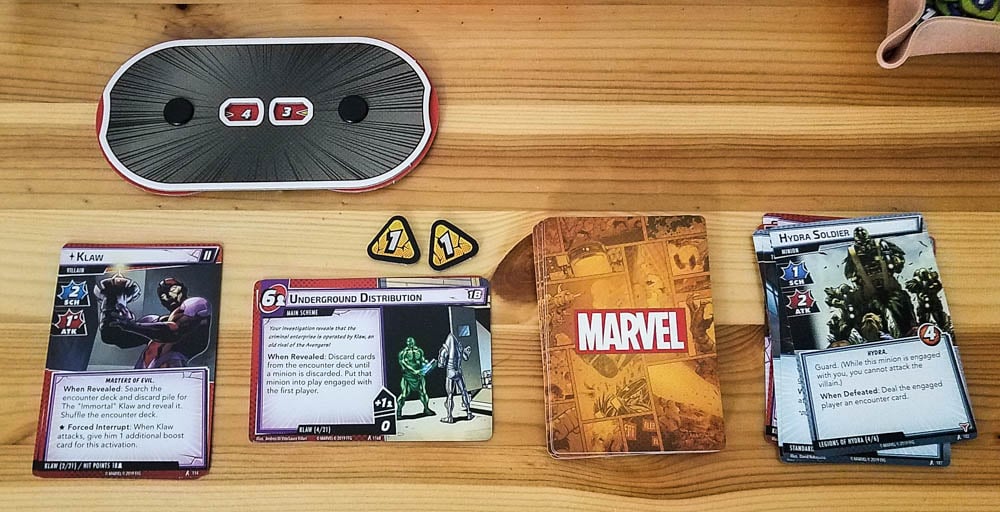 A villain’s main deck is just multiple versions of that villain (for example, Klaw I and Klaw II); you need to defeat every card in that deck to win. The encounter deck consists of the villain’s unique encounter set, the standard encounter set, and a modular encounter set.