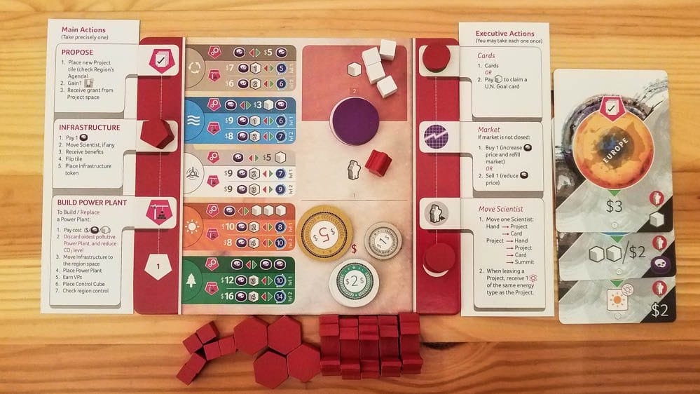 Hopefully that gives you an idea of how the game plays. You’ll try to get some bonuses from your Lobbyist cards, you’ll want to send your scientists out to increase your company’s knowledge in different areas, and you’ll want to work on the power plants that help you claim those U.N. Goal cards.
