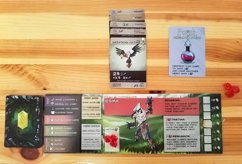 Direwild is a cooperative deck building dungeon crawl from Vas Obeyesekere and Iron Horde Games. You are animists attempting to build up your collection of creatures so you can stop the evil Karn.