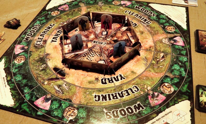 By default, every player gets two actions on their turn. These actions include moving, drawing cabin cards (guns and other items) from inside the cabin, sharing cards, and fighting zombies.